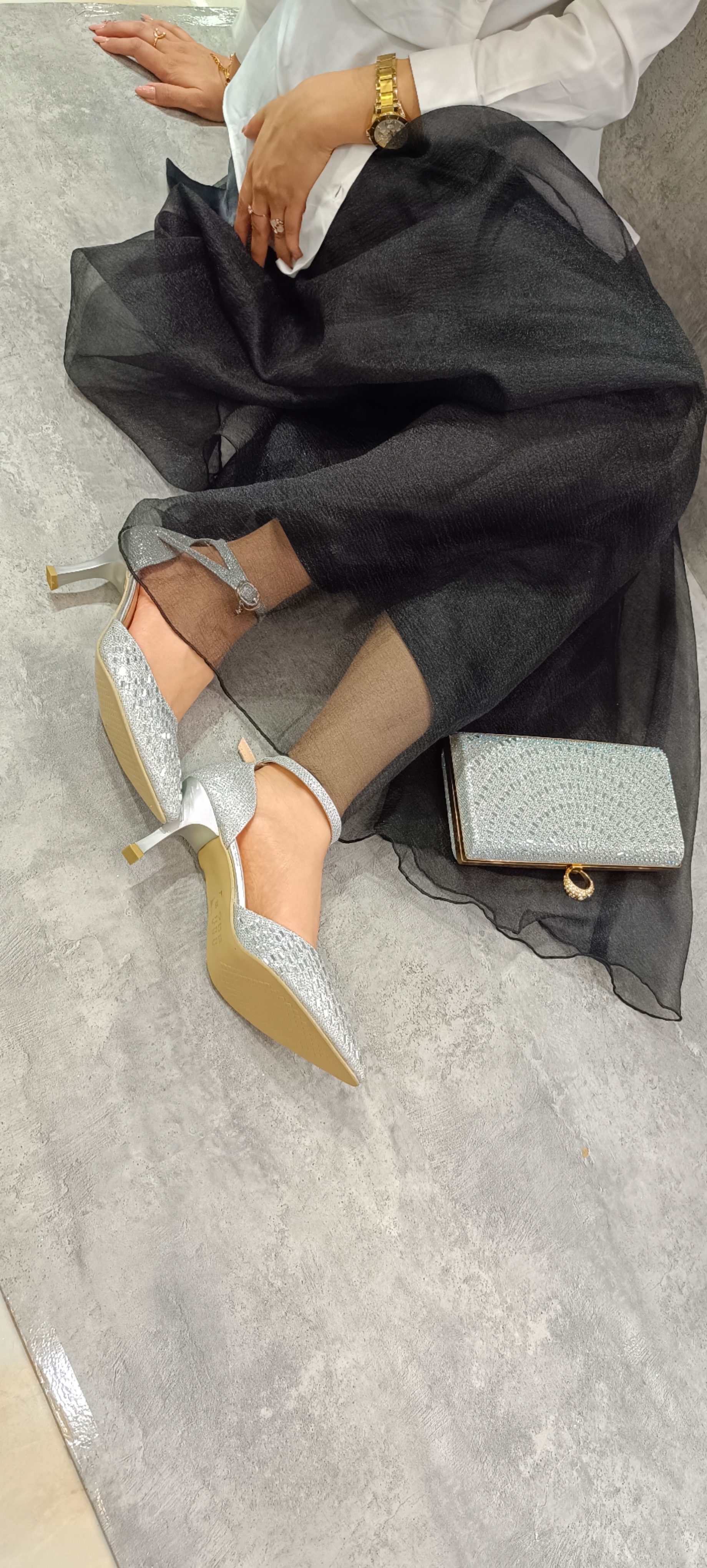 این کفش مجلسی پاشنه بلند زنانه با طراحی خیرهکننده و رویهی آینهکاری، تضمینکننده درخشش شما در هر محفلی است. رویهی این مدل از جنس ترکیبی پوشیده شده با دانههای براق، جلوهای لوکس و ترند به آن بخشیده است. پاشنهی باریک و ظریف ۷ سانتیمتری، در کنار بند مچی، زیبایی و ایستایی لازم را برای یک شب به یاد ماندنی فراهم میکند. زیره بادوام دافوس در این کفش، خیال شما را بابت راحتی و کیفیت آسوده میسازد. این کفش شیک در سه رنگ کلاسیک و مجلسی: نقرهای، طلایی و مشکی و در سایزبندی ۳۷ تا ۴۰ موجود است تا به بهترین شکل استایل شب شما را تکمیل کند. این مدل، بهترین انتخاب برای خرید کفش مجلسی برای عروسی، جشنها و مجالس خاص است.