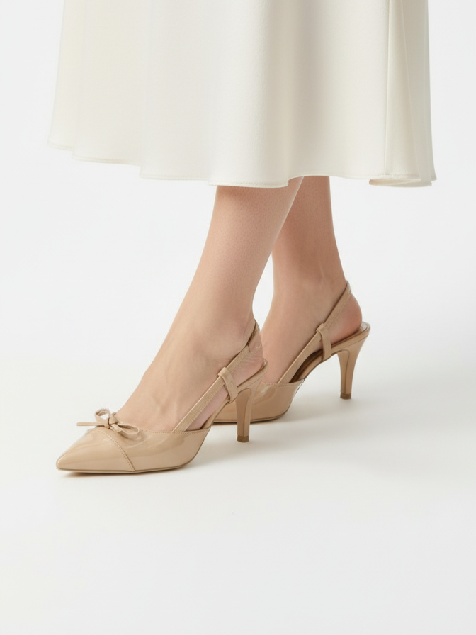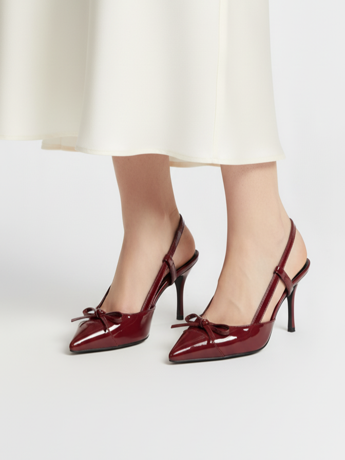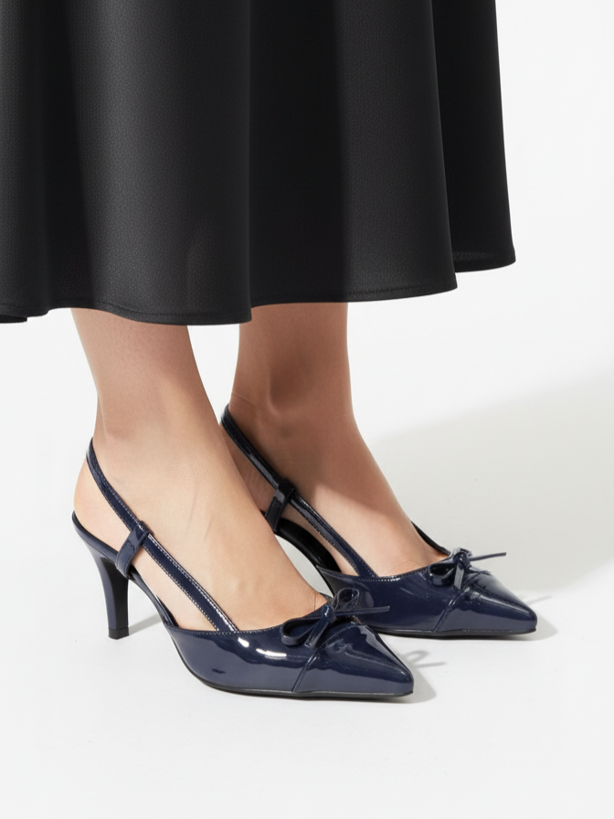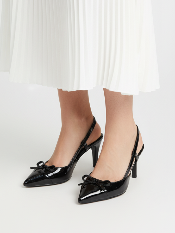 کفش زنانه پاشنه 7 سانت پاپیون ورنی