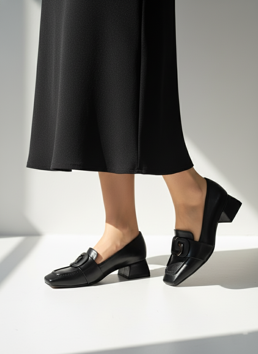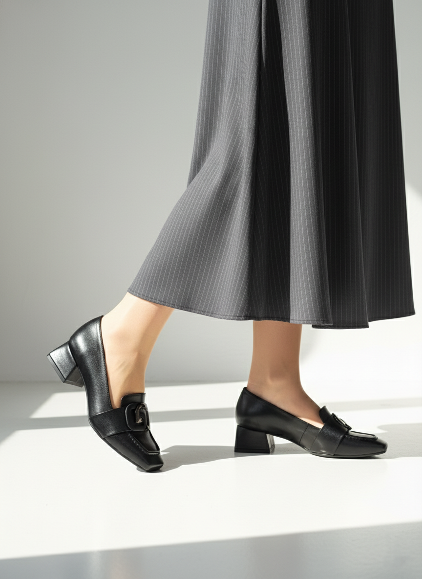 کفش زنانه کالج پاشنهدار سگکدار با طراحی مینیمال و شیک، مناسب استفاده روزمره و محیطهای کاری است. رویهی چرم مصنوعی باکیفیت، دوام و ظاهر رسمی کفش را تضمین میکند و زیرهی PVC آن، راحتی و انعطاف مناسبی در طول روز فراهم میآورد. پاشنهی مربعی کوتاه و سگک تزیینی رویه، جلوهای کلاسیک و خاص به استایل شما میدهد.