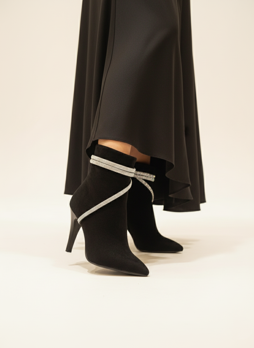 این بوت مجلسی زنانه با طراحی شیک و بندهای نگیندار، انتخابی ایدهآل برای استایلهای رسمی و مهمانی است. رویه مخمل جلوهای خاص و ظریف ایجاد کرده و پاشنه خوشفرم آن ظاهر شما را جذابتر میکند. این مدل بهراحتی با انواع لباسهای مجلسی و دامنهای بلند ست میشود و استایلی چشمگیر میسا