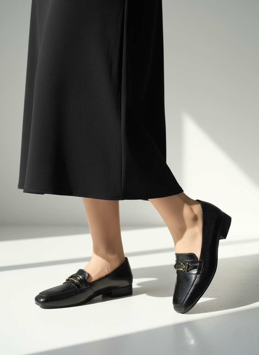 این کالج زنانه با طراحی کلاسیک و سگک پروانهای طلایی، ظاهری شیک و رسمی دارد. رویه ورنی باکیفیت و پاشنه کوتاه و راحت، آن را برای استفاده روزانه، محیطهای کاری و رسمی بسیار مناسب میسازد. زیره PVC باکیفیت، دوام و سبکی کفش را تضمین میکند.