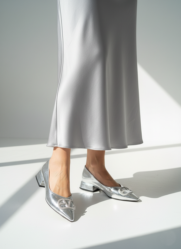 این کفش مجلسی با طراحی نوک تیز، انتخابی شیک و راحت برای مراسم و مهمانیها است. پاشنه کوتاه و پهن آن ایستایی و راحتی را تضمین میکند و سگک درشت فلزی روی پنجه، جلوهای خاص به کفش میبخشد. زیره دافوس، دوام و کیفیت کفش را افزایش میدهد