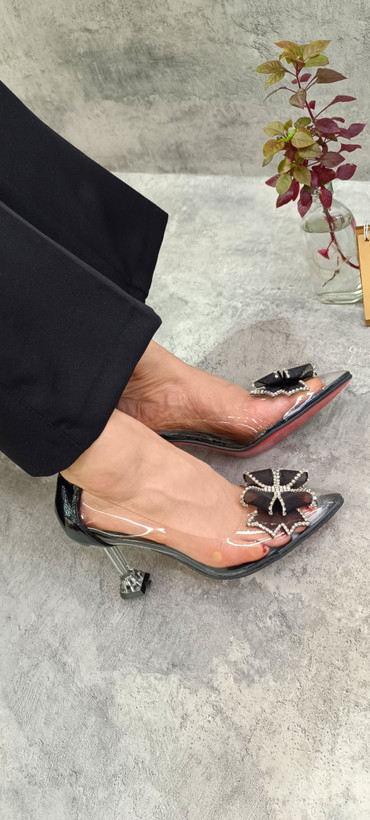 کفش طلقی مجلسی پاپیون پاشنه شیشه ای 7 سانت